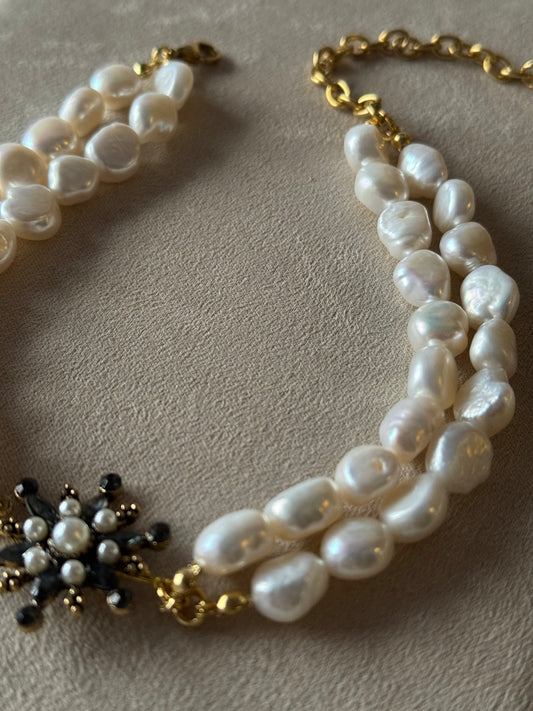 Choker RAÍCES Doblete de Perlas & Estrella Emperlada Tono Oscuro