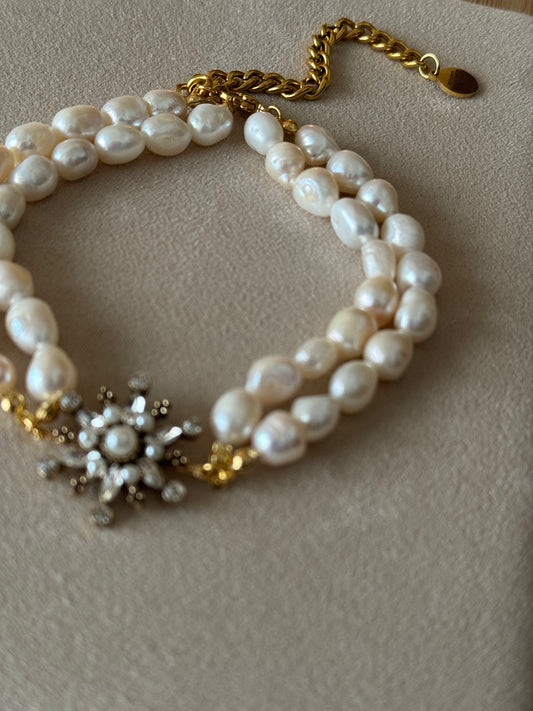 Choker RAÍCES Doblete de Perlas & Estrella Emperlada Tono Claro