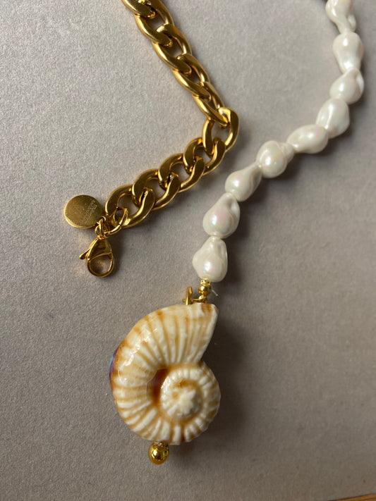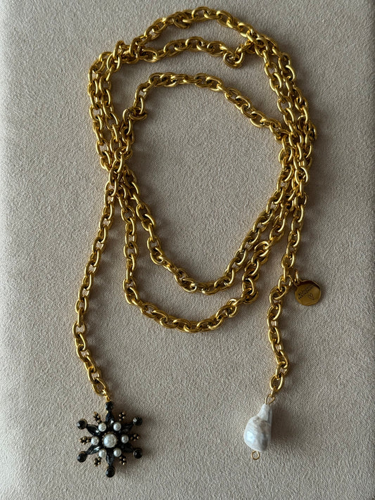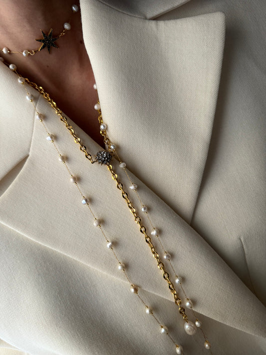 Collar RAÍCES Multiposición Estrella Emperlada & Perla Tono Oscuro