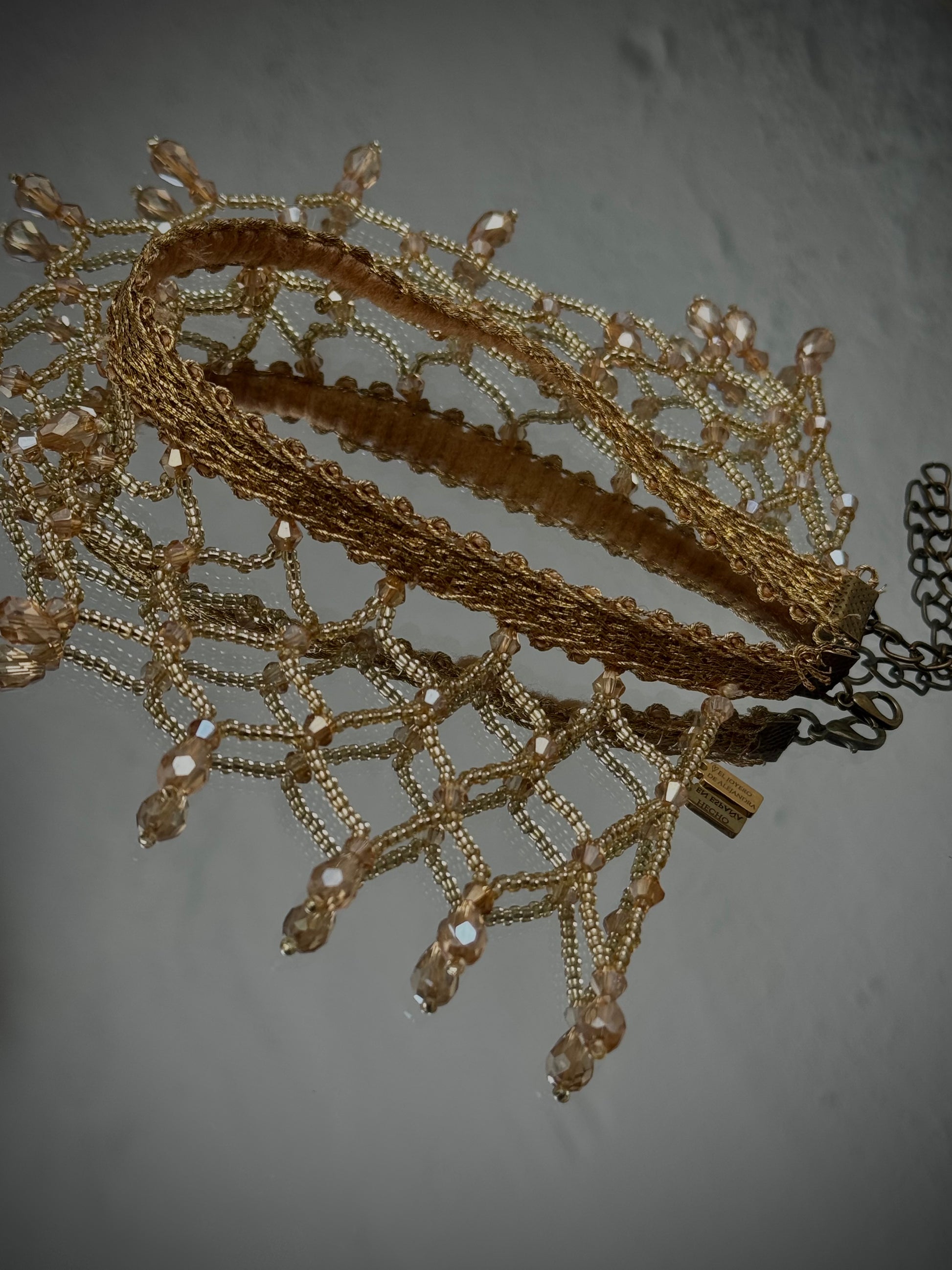 Choker trabajado artesanalmente a partir de tejido con hilaturas metalizadas y mini piedras de cristal