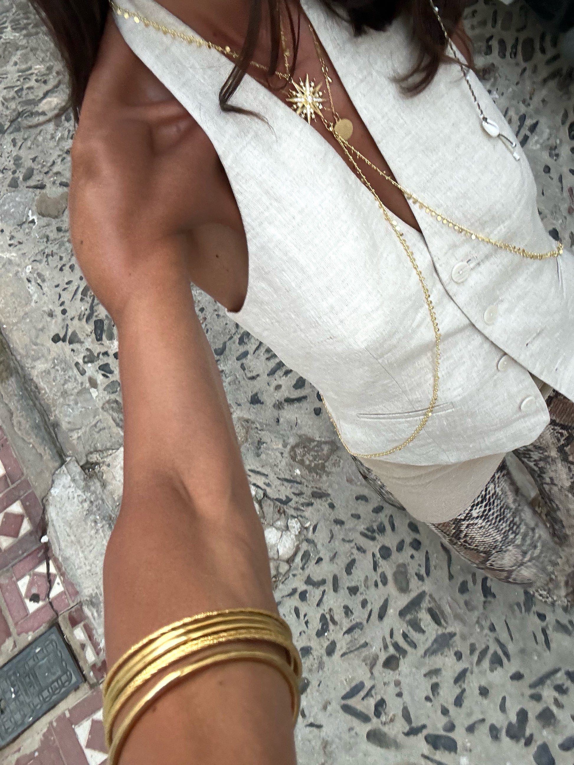 Las cadenas de los lados pueden retirarse siempre que quieras, van engarzadas al Maxi Sol con un mini mosquetón para utilizarlo como body Chain o como collar básico con nuestro súper amuleto más favorecedor ✨✨✨ 2 en 1 ✨✨✨