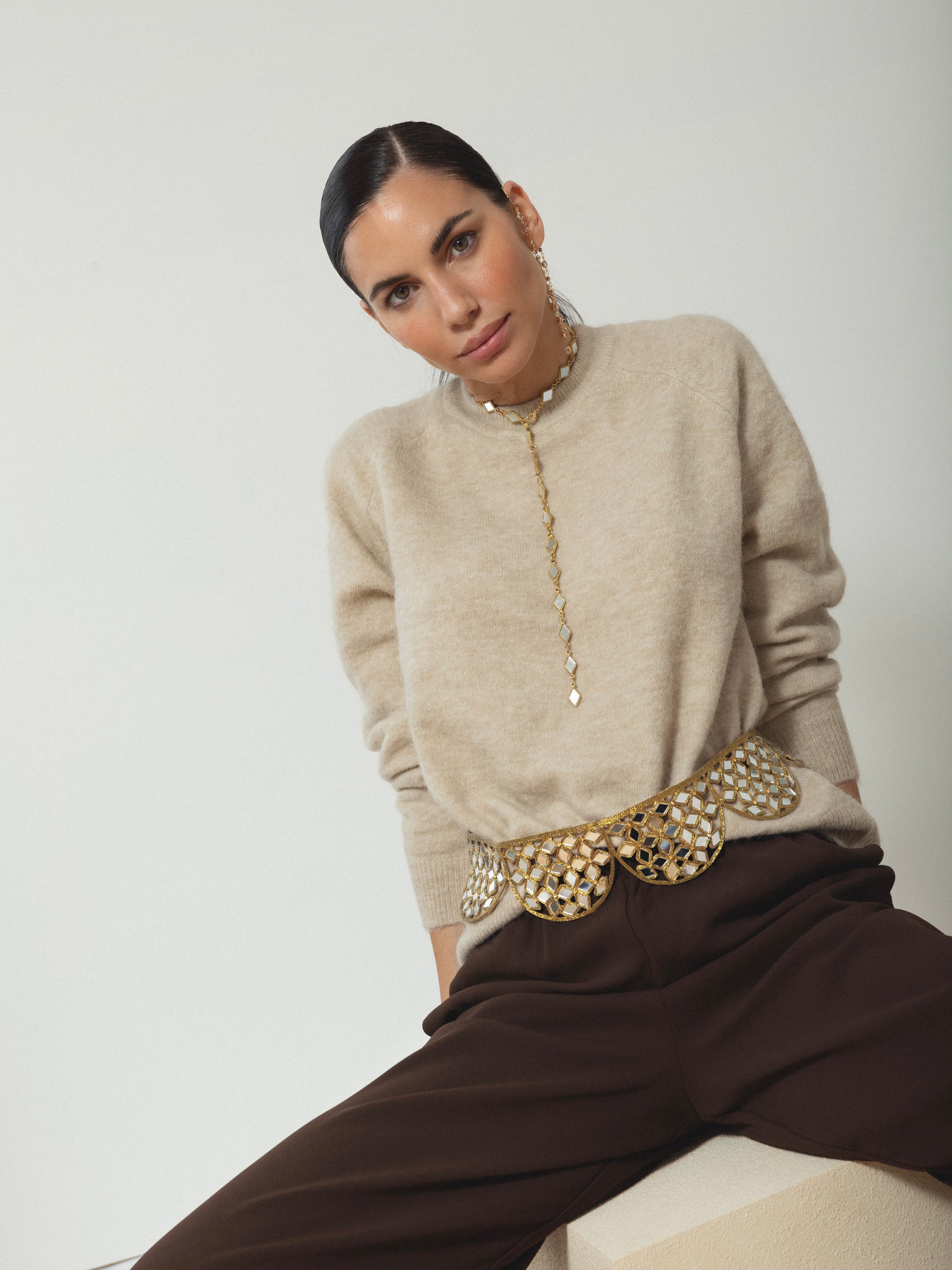 Rombos de espejo en cadena, creando un efecto de collar corbatero, ajustándolo donde más te guste.
